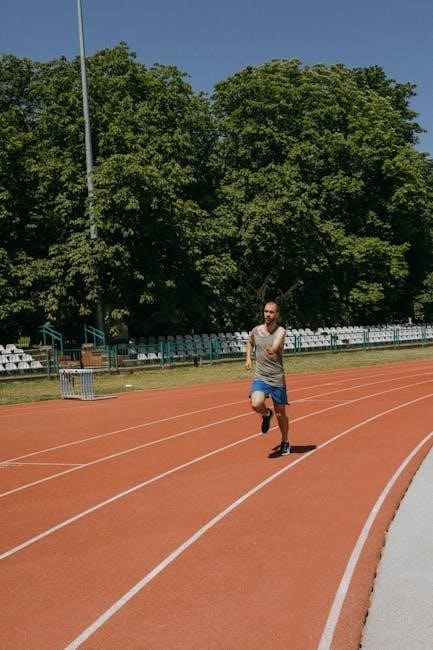 Balancing strength and speed training is crucial for 100m sprinters to optimize performance without overtraining. Strength workouts build muscle power‚ while speed training enhances neuromuscular coordination. A well-structured program allocates specific days for strength exercises‚ such as squats and lunges‚ and separate days for speed drills‚ like sprints and plyometrics. This balance ensures athletes develop both muscular force and explosive acceleration. Overemphasizing strength can lead to unnecessary muscle mass‚ while focusing solely on speed may limit power output. A balanced approach allows sprinters to maintain efficiency‚ avoid injury‚ and peak for competition. Periodic deload weeks further help in recovery and sustained progress. This integration is key to achieving elite-level performance.